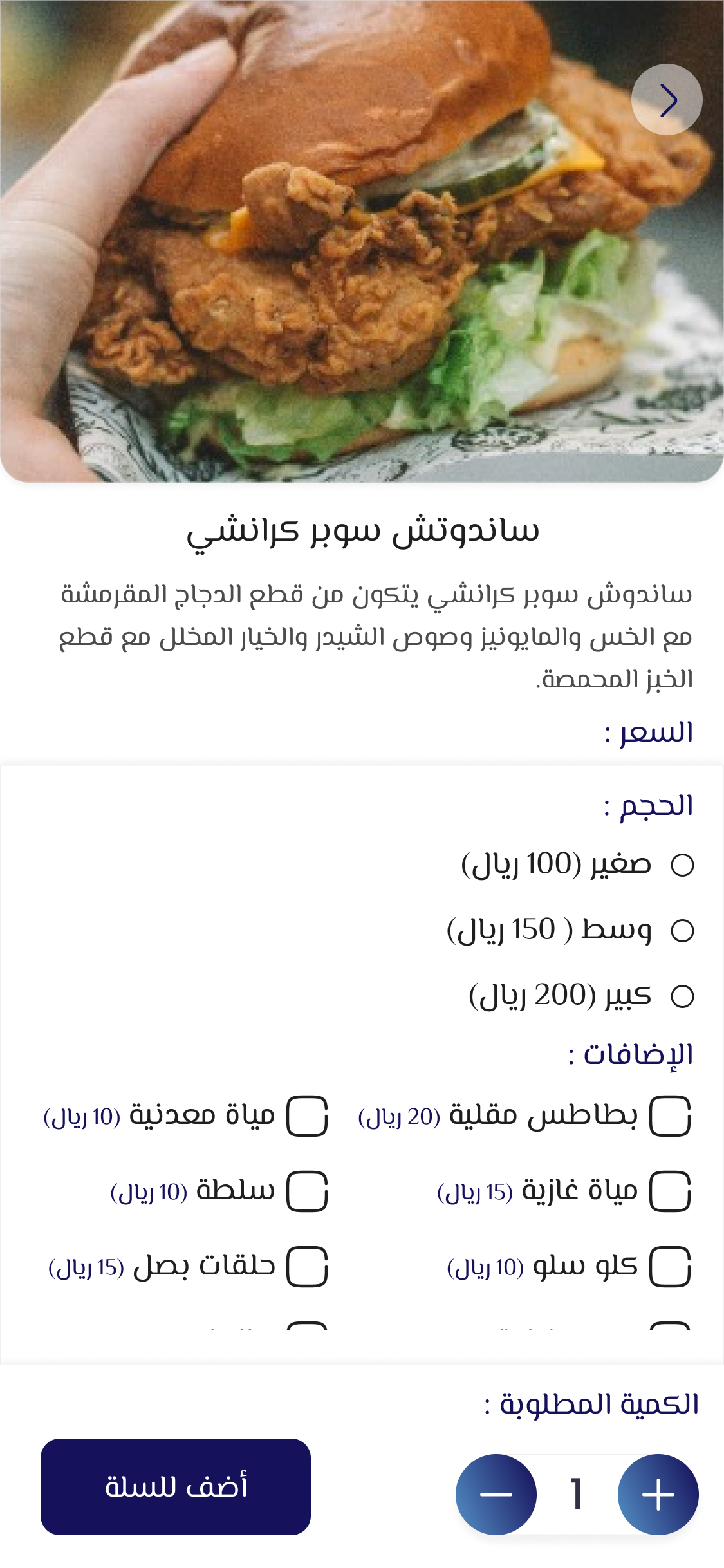 عند اختيار منتج مثلا من مطعم تظهر مواصفاته كالحجم والاضافات ويمكنك تتبع طلبك فيما بعد